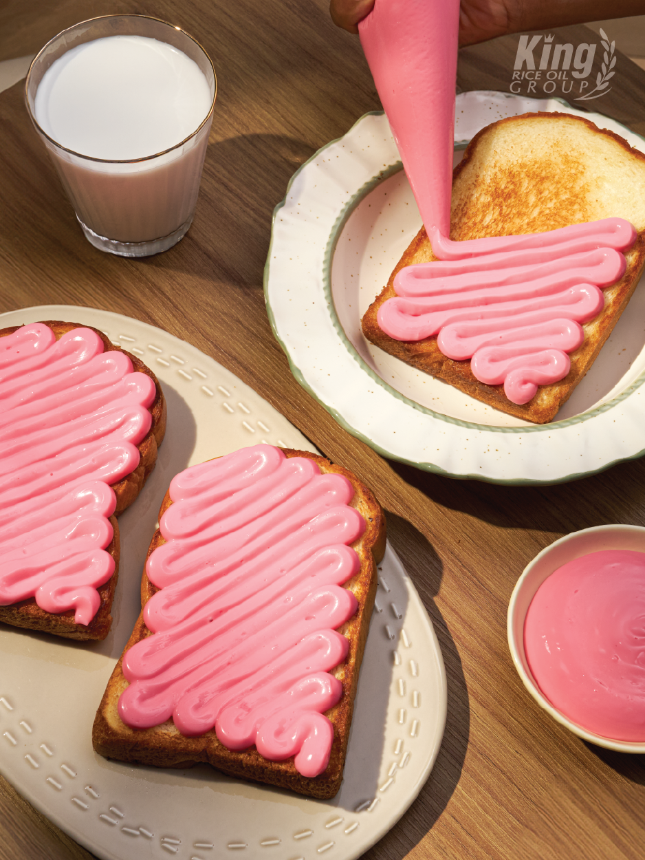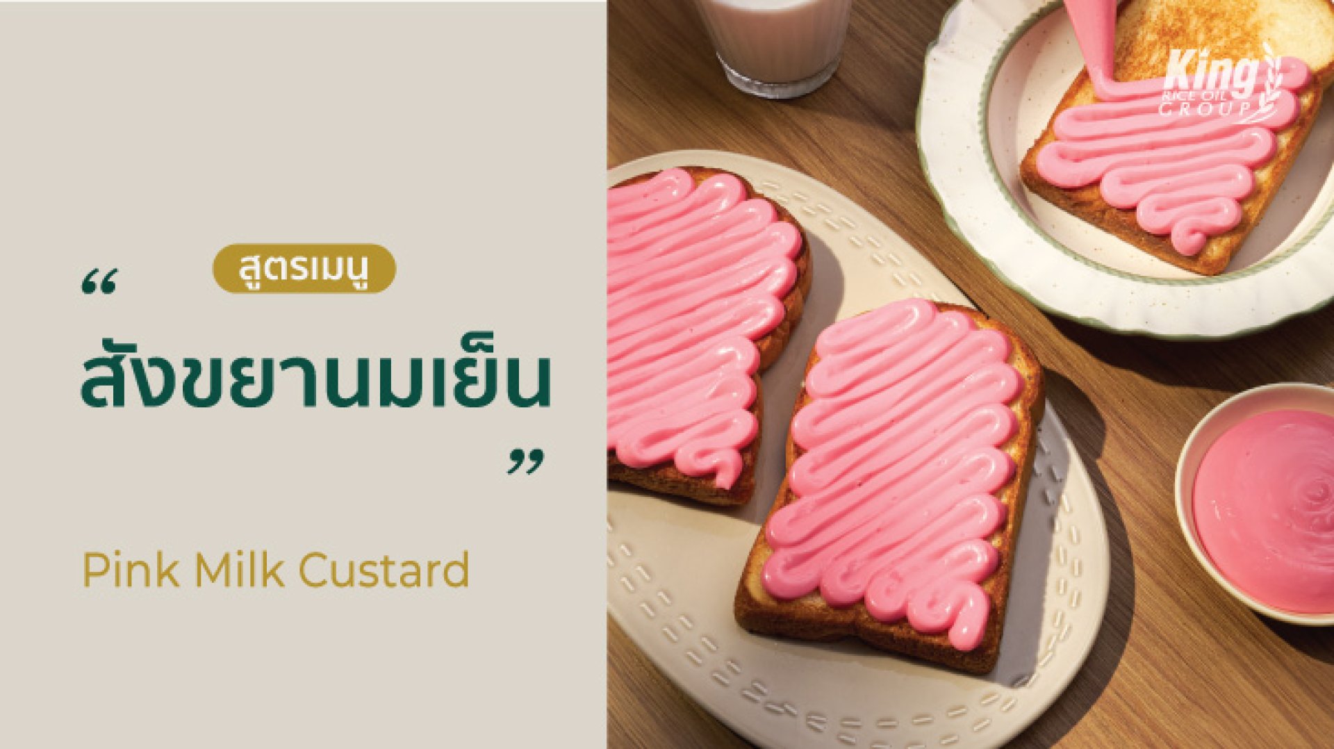 สูตรเมนู สังขยานมเย็น Pink Milk Custard เมนูขนมไทยฟิวชันที่ทั้งน่ารักและอร่อย! สังขยานมเย็น ได้แรงบันดาลใจจากเครื่องดื่มสุดฮิตในวัยเด็กอย่างนมชมพู นำมาทำเป็นสังขยาหอมหวานนุ่มละมุน เพิ่มความข้นมันด้วย ครีมน้ำมันรำข้าวไรซ์ลี่ที่ดีต่อสุขภาพ ได้ทั้งรสชาติกลมกล่อมและคุณค่าดีๆ จากน้ำมันรำข้าว ทาขนมปังปิ้งร้อนๆ อร่อยละมุนจนหยุดไม่อยู่ ลองทำกันเลย!