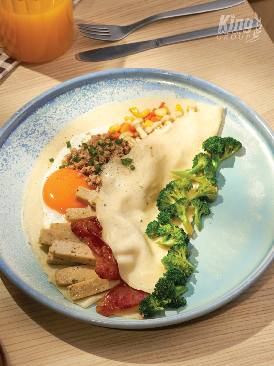 สูตรเมนู ไข่กระทะเครปทรงเครื่อง Pan-Fried Egg Crepe with Toppings เพิ่มความสนุกให้มื้อเช้าด้วย ไข่กระทะเครปทรงเครื่อง เมนูประยุกต์ทำแป้งได้ง่ายๆที่บ้าน พร้อมไส้ที่ใส่ได้แบบจัดเต็ม กลายเป็นจานโปรดที่ทั้งอิ่ม อร่อย เหมาะสำหรับเช้าวันเร่งรีบหรือมื้อเบาๆ ลองทำกันเลย!